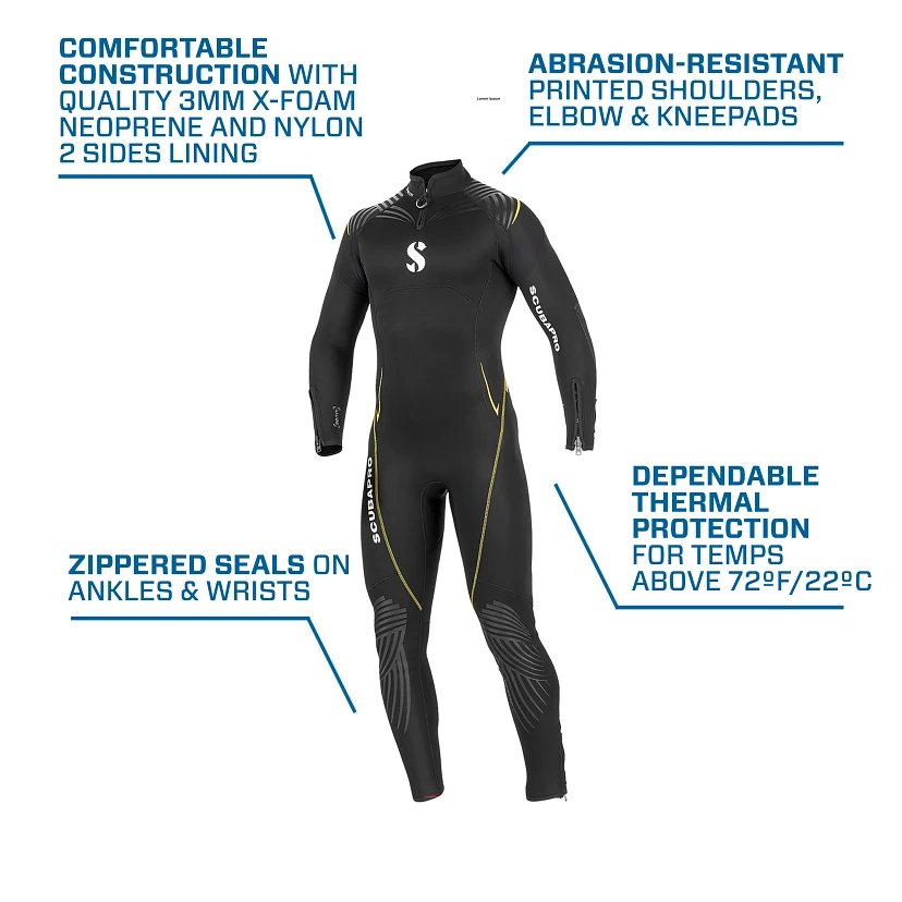 Den er bygget med SCUBAPROs Body Map System, en fremstillingsmetode, der bruger 3D-snit, speciel skræddersyning og materialeindsatser til at skabe en dragt, der passer som fod i hose, giver ekstra stræk, hvor der er mest brug for det, og tilbyder fremragende varme, komfort og holdbarhed.