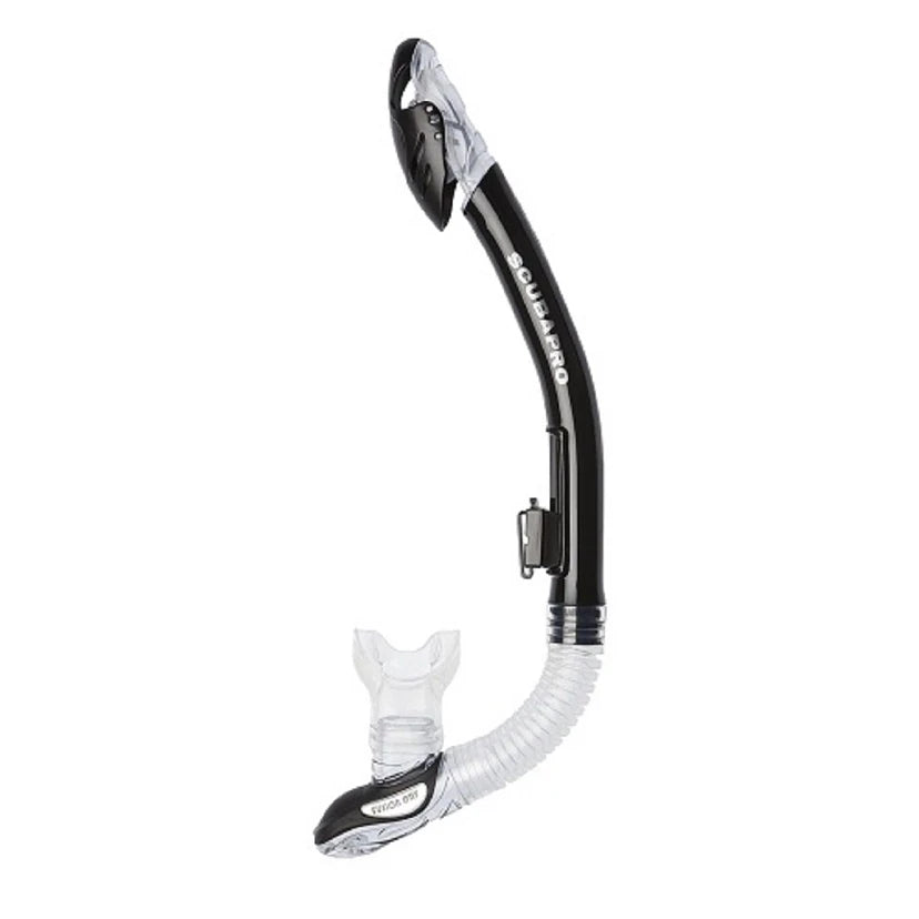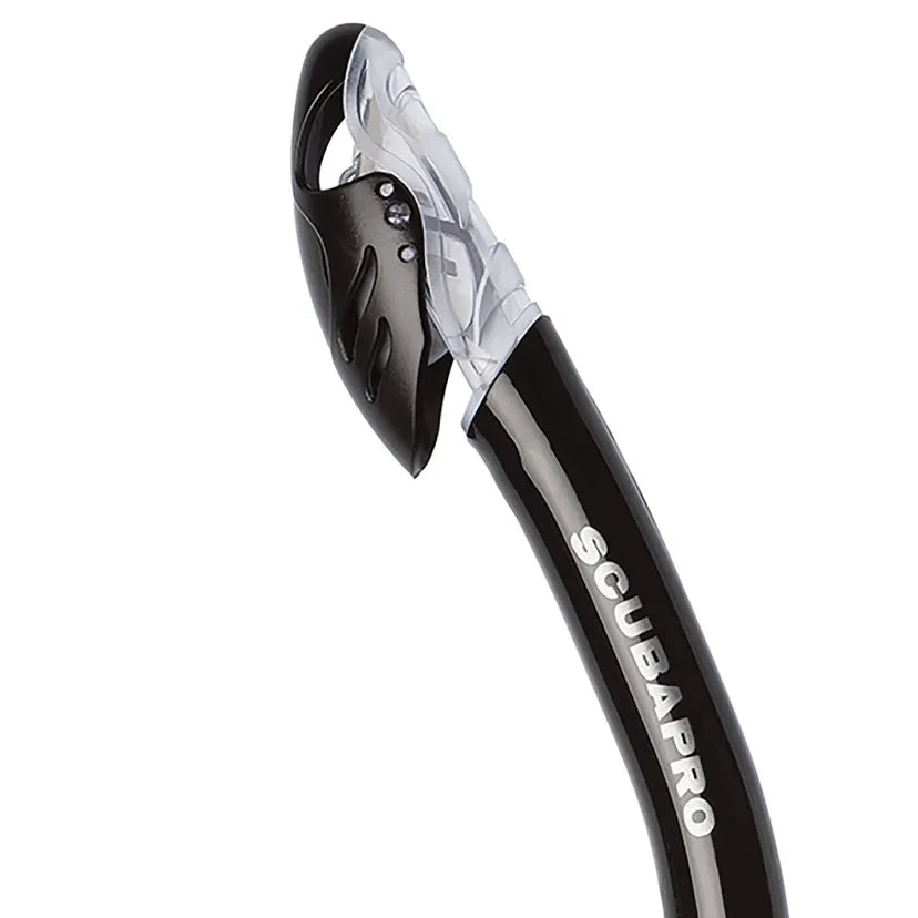 Scubapro Fusion Dry er en yderst effektiv tørsnorkel med et patenteret drop-away nedre rør og et udskifteligt, forbøjet silikonemundstykke.