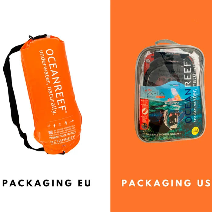 Ocean Reef Aria er den originale fullface snorkelmaske, der lader dig trække vejret helt naturligt gennem både næse og mund. Den smarte dry top-teknologi forhindrer vand i at trænge ind, og en automatisk ventil i bunden lukker hurtigt evt. vand ud.