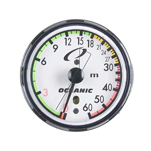 Oceanic SWIV Max-Depth dybdemåleren er udstyret med en nål til indikator for maksimal dybde, der markerer din dybeste dybde, du har nået på et dyk. Denne funktion er nyttig, når du logger dykkeinformation, hvilket giver vigtig information til gentagne dyk. Dybdemåleren er farvekodet for nem og sikker aflæsning med et hurtigt blik. Dybdemåleren har en aflæsning fra 0 til 60 meter med røde sikkerhedsindikatorer ved 0 og 3 meter til sikkerhedsstop, og for dybder ud over sportsdykkergrænserne fra 30 til 60 meter er baggrunden også farvekodet med rød. For yderligere at øge sikker dykkerpraksis er baggrunden for dybderne fra 0 til 18 meter farvekodet med grøn med en gul advarselszone fra 18 til 30 meter.